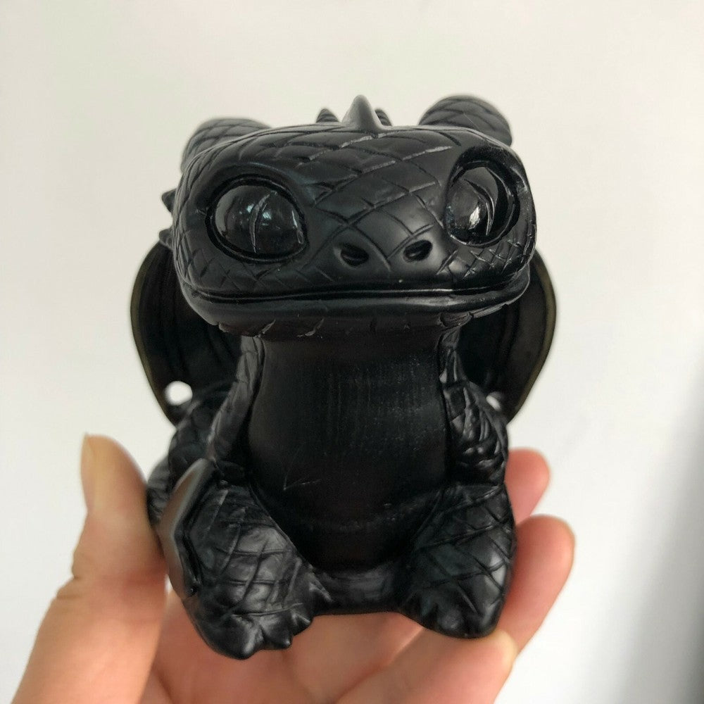 Incroyable dragon édenté en cristal de quartz d'obsidienne noire naturelle de 3,1 pouces