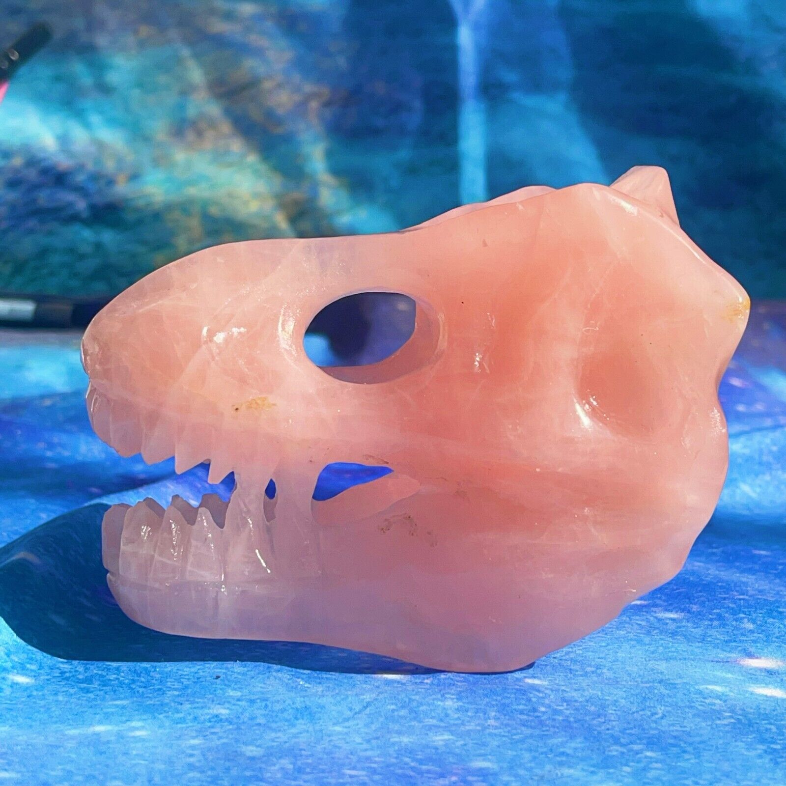 550G Natural Polished Hand carved Powder crystal Dinosaur Skull