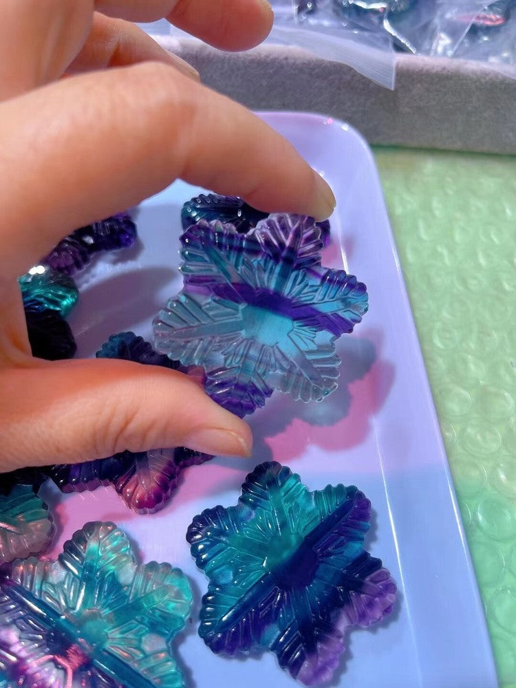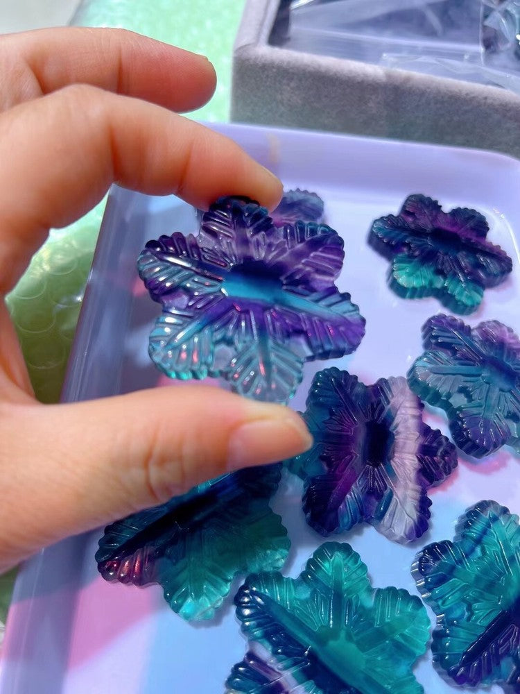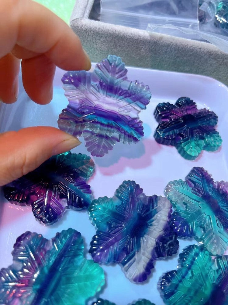 1PC Natural fluorite carved snowflake quartz crystal reiki healing Gem Gift