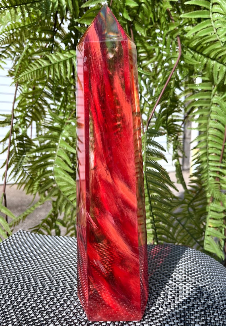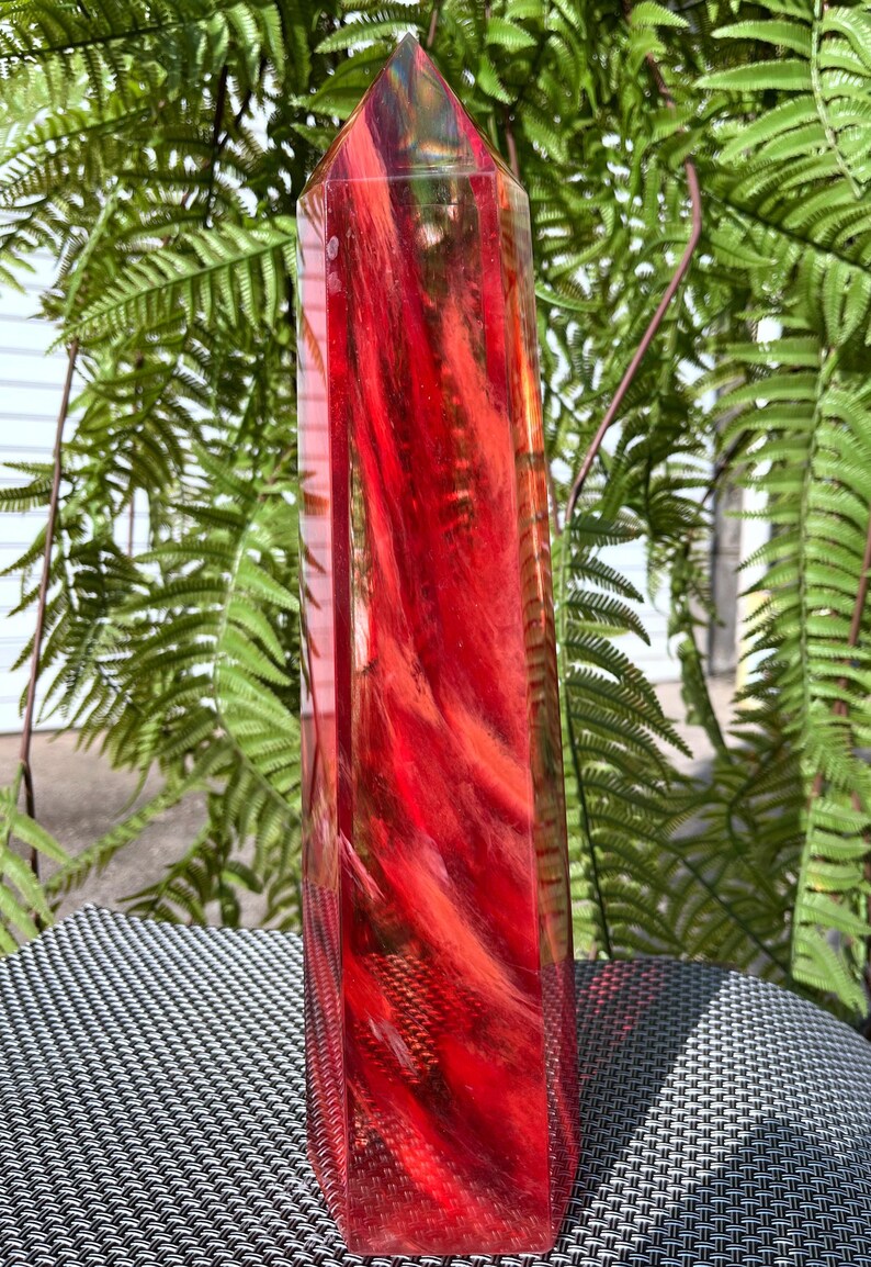 Clear Smelt Red quartz point/Clear Smelt quartz Polished Chunks/Crystal grid/Special gift/Meditation Stone