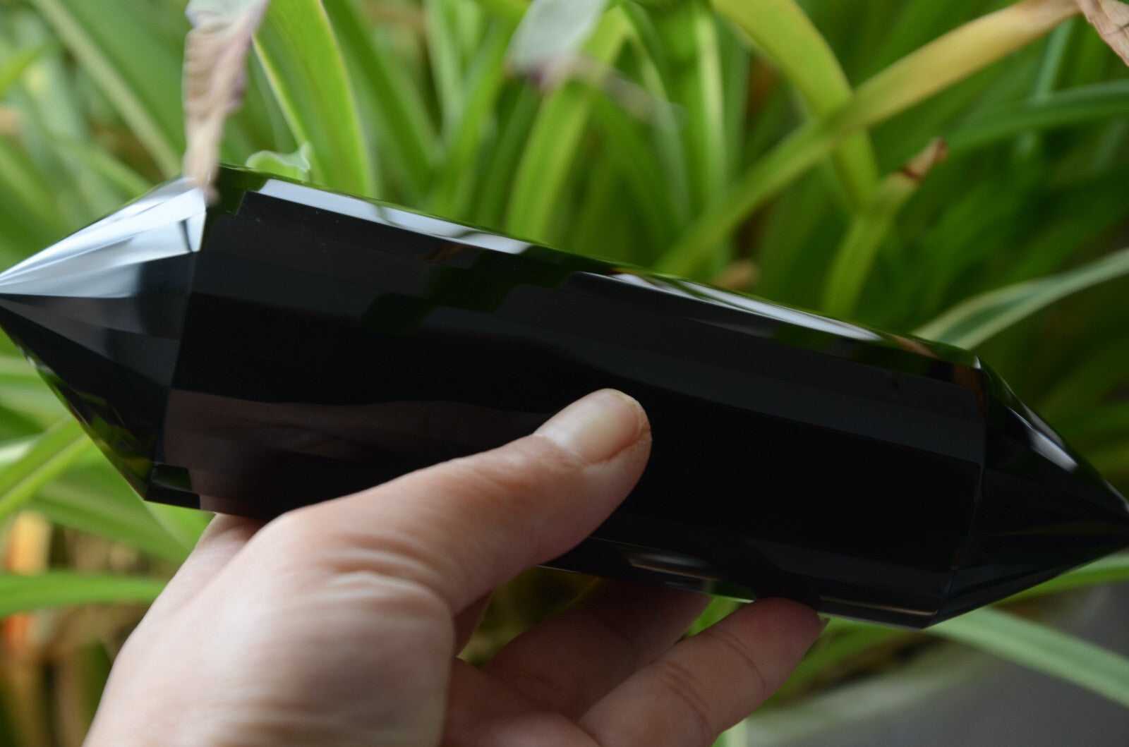Giant Black Obsidian 24 Sided 6.73" Crystal Quartz Vogel Style Wand Point Energy