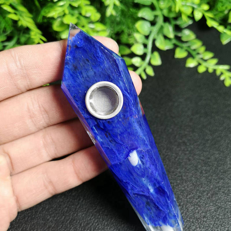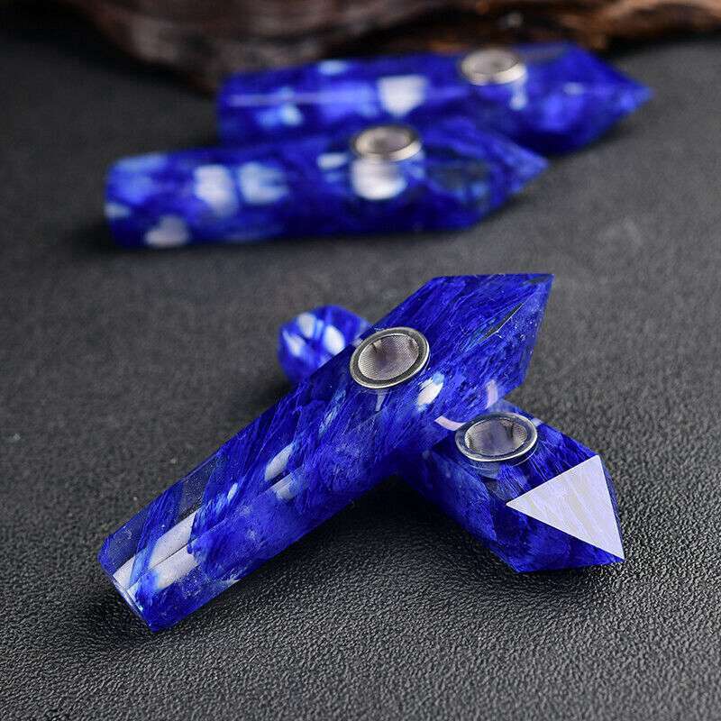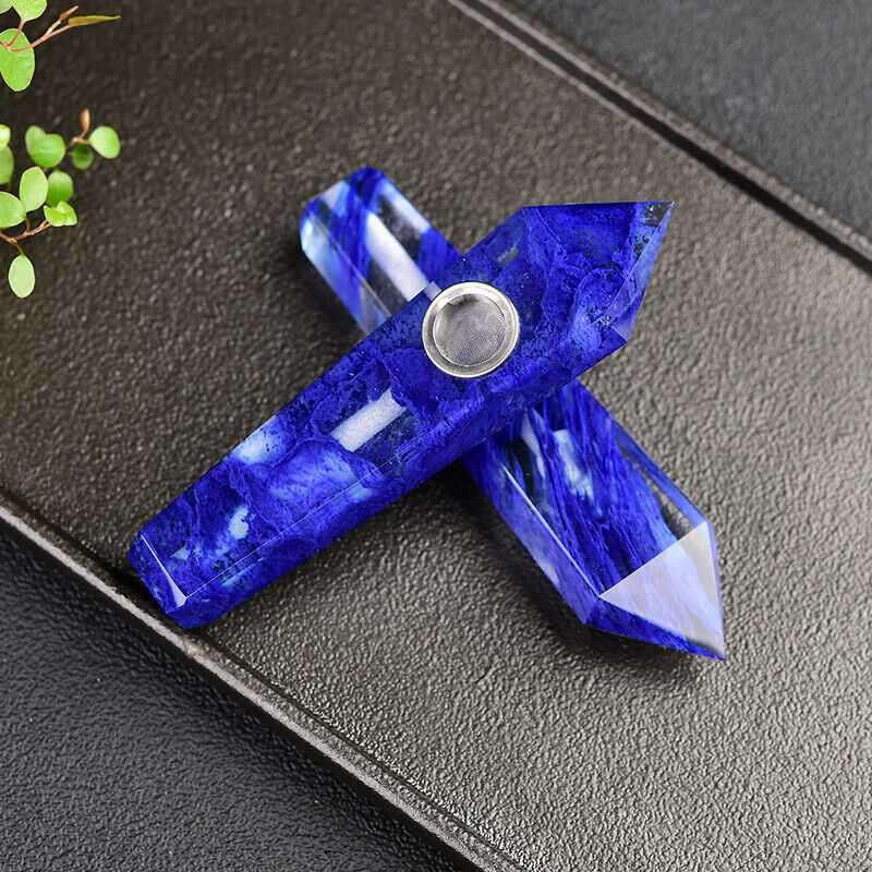 Natural Blue Melting Stone Smoking Pipe Quartz Crystal Wand Point Reiki Obelisk