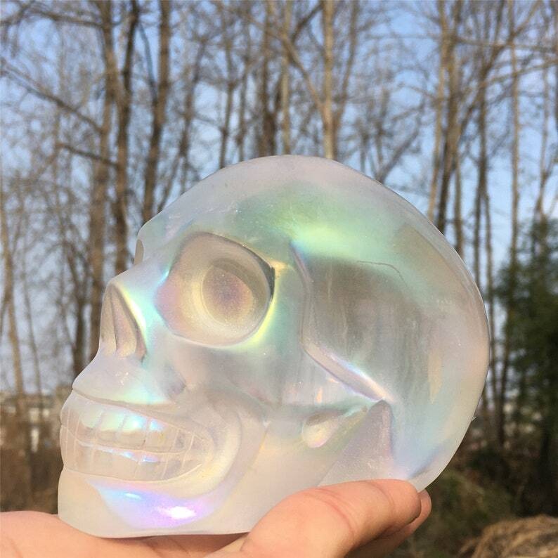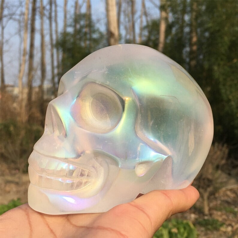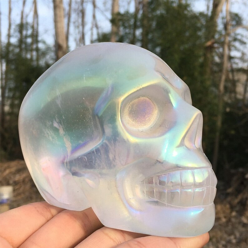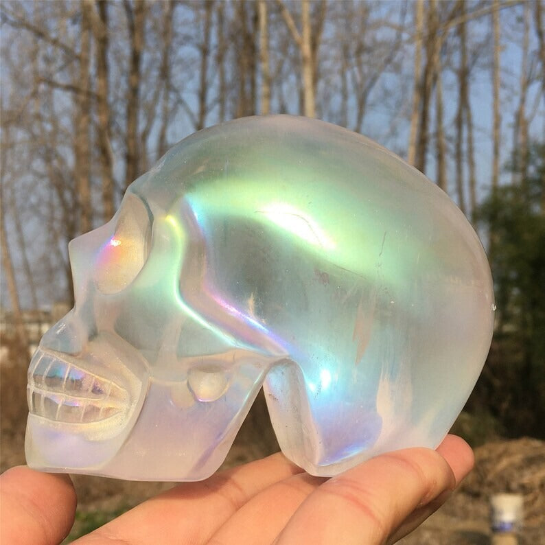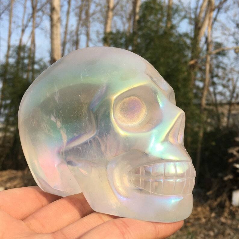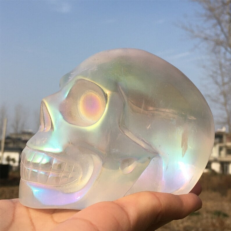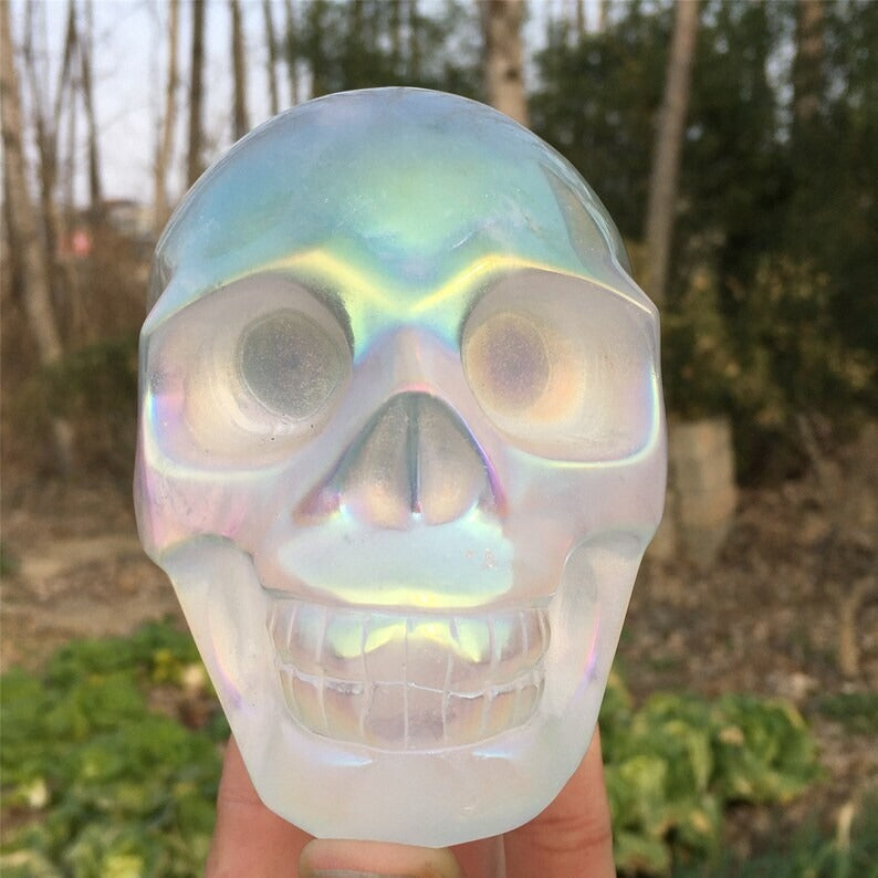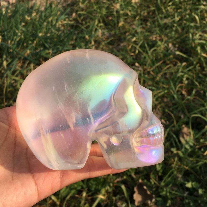 Titanium Rainbow Clear Melting stone Crystal Skull Reiki Heal Mineral Sample 1PC