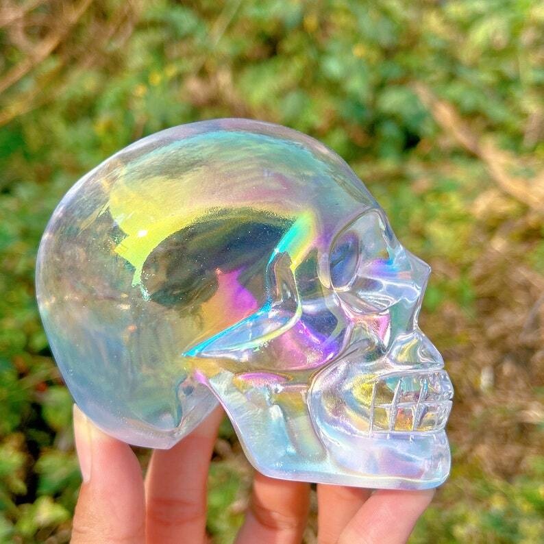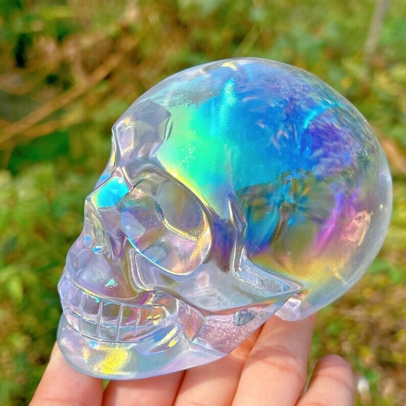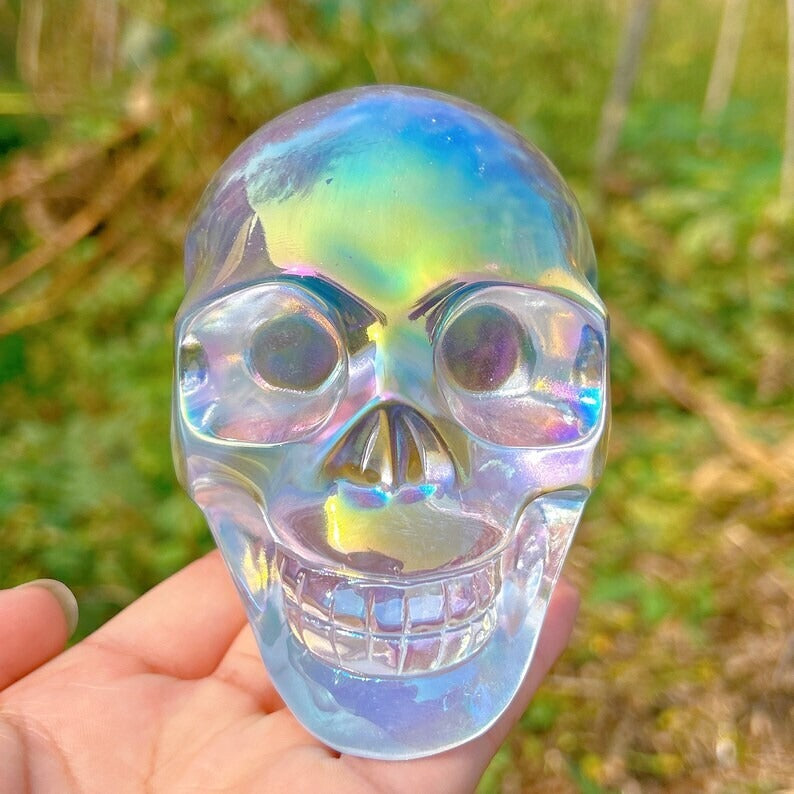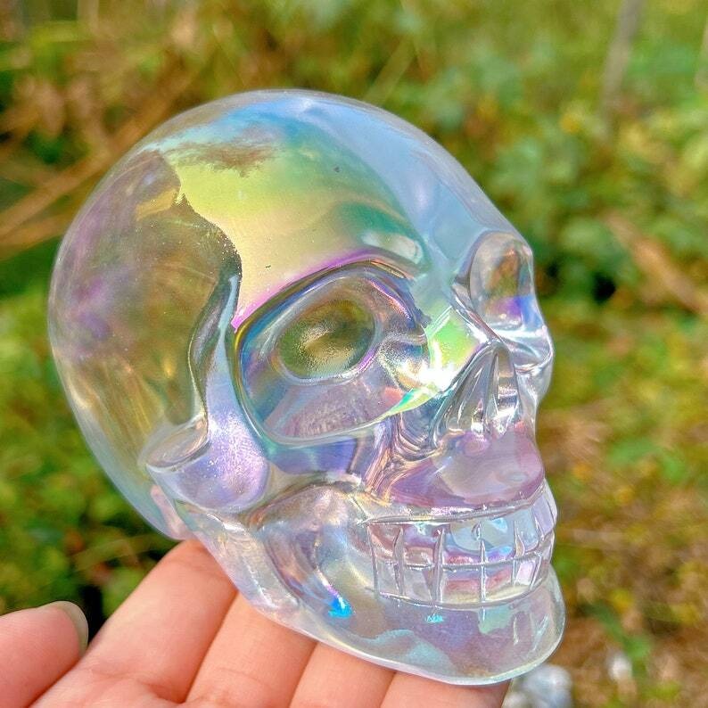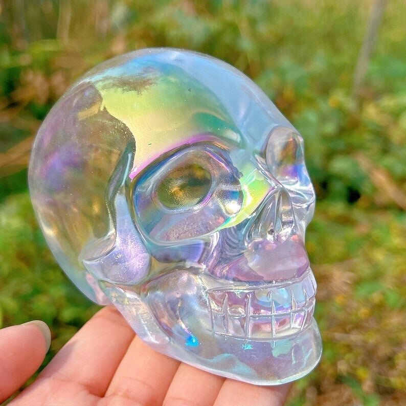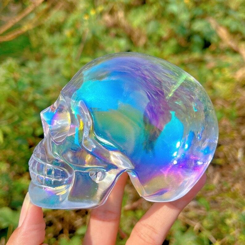 Titanium Rainbow Clear Melting stone Crystal Skull Reiki Heal Mineral Samples